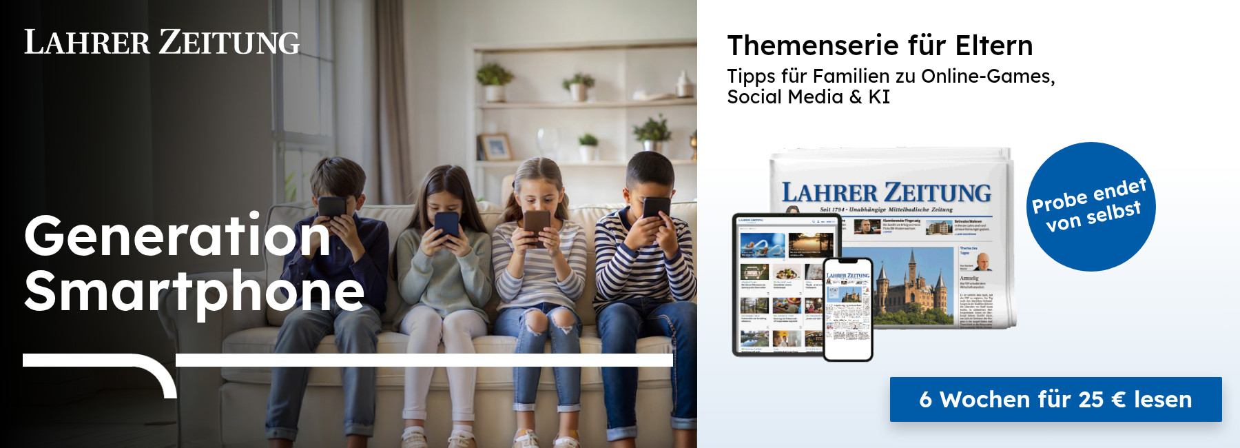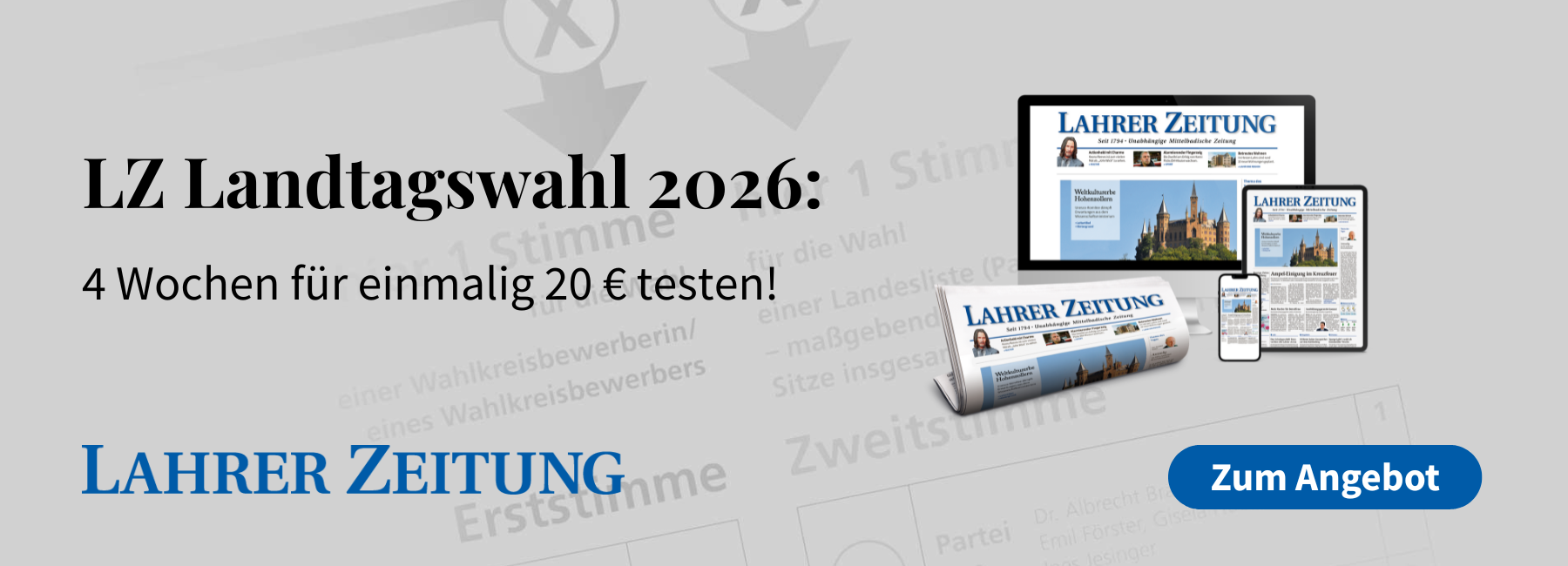 LZ Digital-Abo zum „NICE PRICE“: Die wichtigsten Nachrichten aus der Region direkt auf dem Smartphone oder Tablet abrufen – und das mit 50 % Rabatt. Für alle unter 35 Jahren.