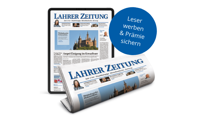 Werben Sie jetzt Freunde und Bekannte für ein Abonnement der Lahrer Zeitung. Als Dankeschön erhalten Sie einePrämie Ihrer Wahl im Wert von bis zu 100 €.