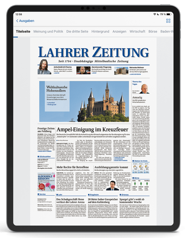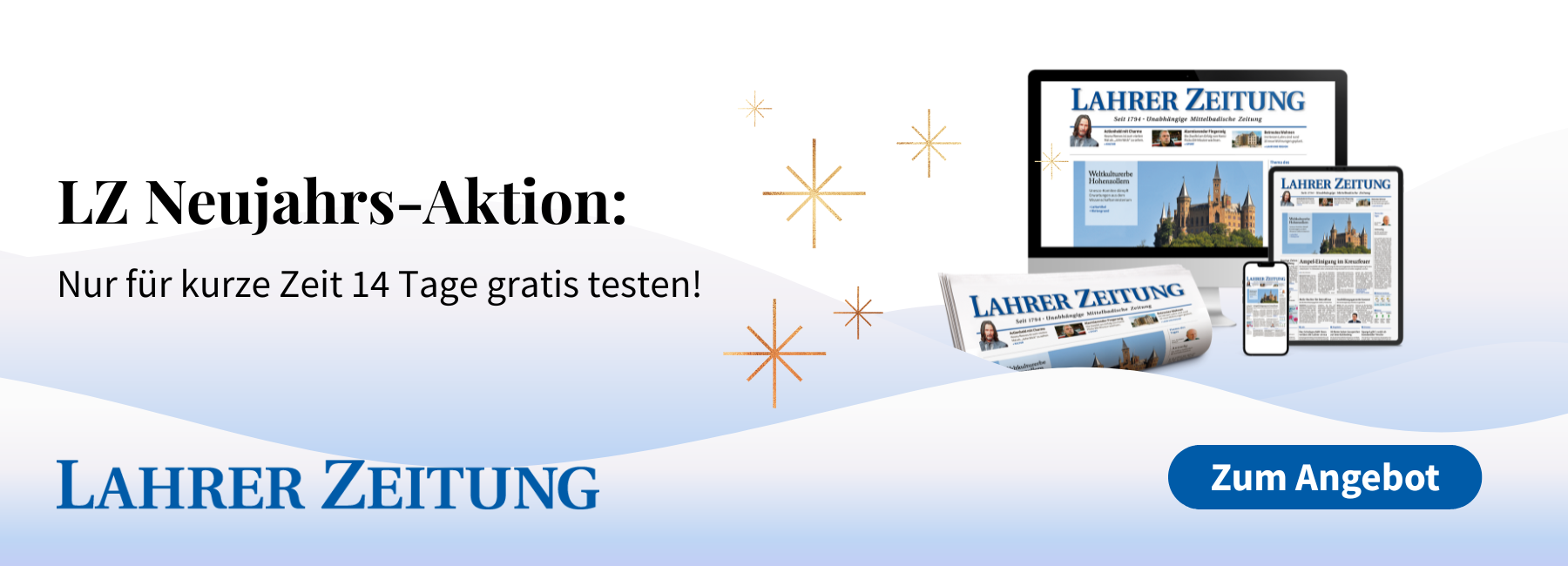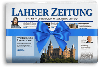 Verschenken Sie täglichen Lesegenuss, der in Erinnerung bleibt. Der Beschenkte erhält die Lahrer Zeitung von Montag bis Samstag frühmorgens in den Briefkasten geliefert inklusive LZ E-Paper, Webzugang sowie digitaler Sonntagszeitung mit noch mehr regionalen Nachrichten.